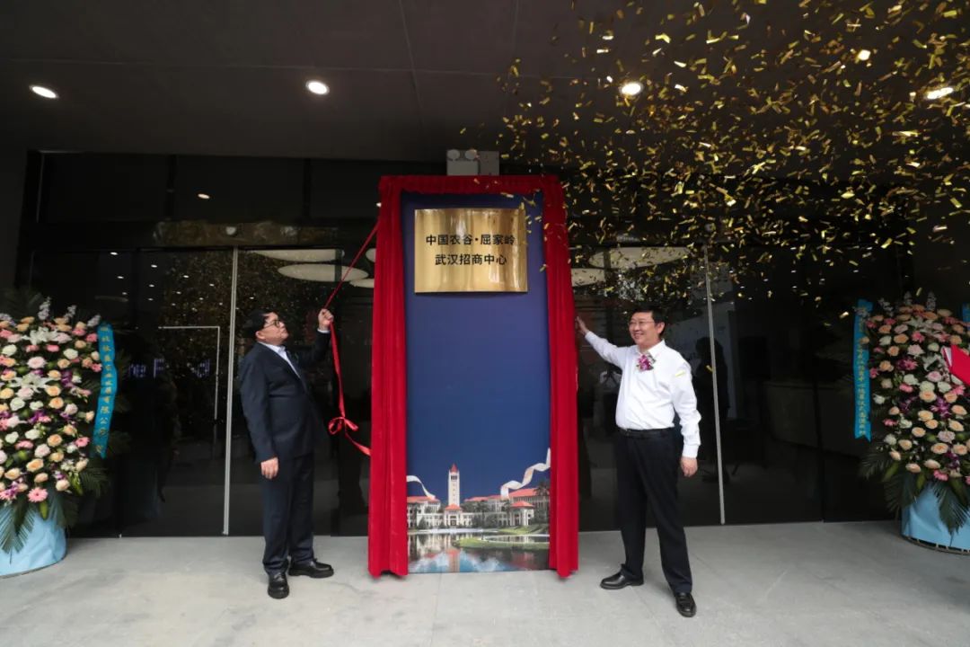 當(dāng)天揭幕儀式上,湖北肽益集團(tuán)首席科學(xué)家、未來食品創(chuàng)新中心理事、外籍院士陳棟梁,屈家?guī)X管理區(qū)黨工委書記、管委會(huì)主任易俊洲,共同為中國(guó)農(nóng)谷·屈家?guī)X武漢招商中心揭幕!