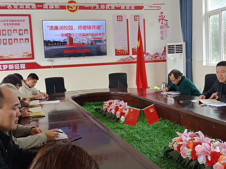 10月22日,宋河中學(xué)開展主題為“清廉潤校園,師德鑄師魂”的師德師風(fēng)專題教育活動,以清廉之風(fēng)引領(lǐng)教育風(fēng)尚,塑造教師良好形象,進(jìn)一步加強(qiáng)師德師風(fēng)建設(shè)。活動中,該校全體教師認(rèn)真學(xué)習(xí)了《新時代中小學(xué)教師職業(yè)