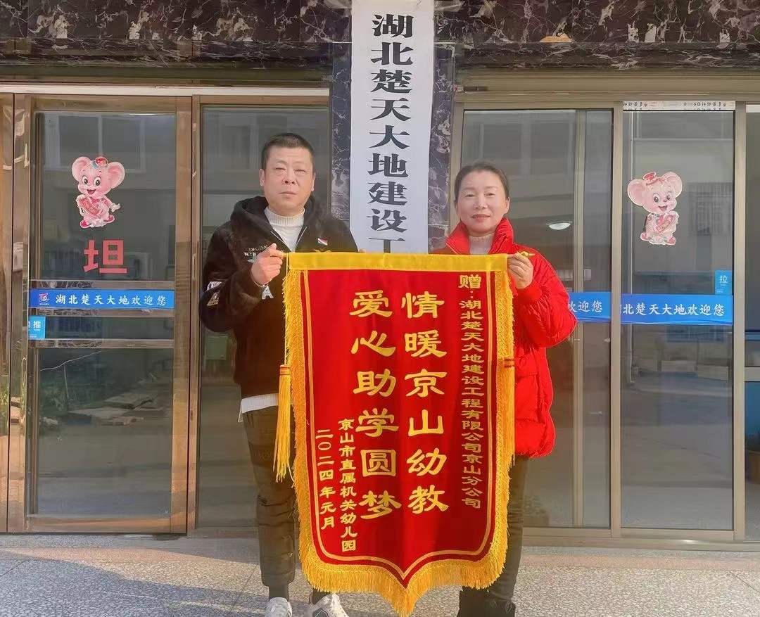 1月27日,市直屬機(jī)關(guān)幼兒園向湖北楚天大地建設(shè)工程有限公司京山分公司贈(zèng)予錦旗,對(duì)該公司的資助表示感謝。日前,湖北楚天大地建設(shè)工程有限公司京山分公司向市直機(jī)關(guān)幼兒園捐贈(zèng)資金10萬(wàn)元,支持我市學(xué)前教育工作