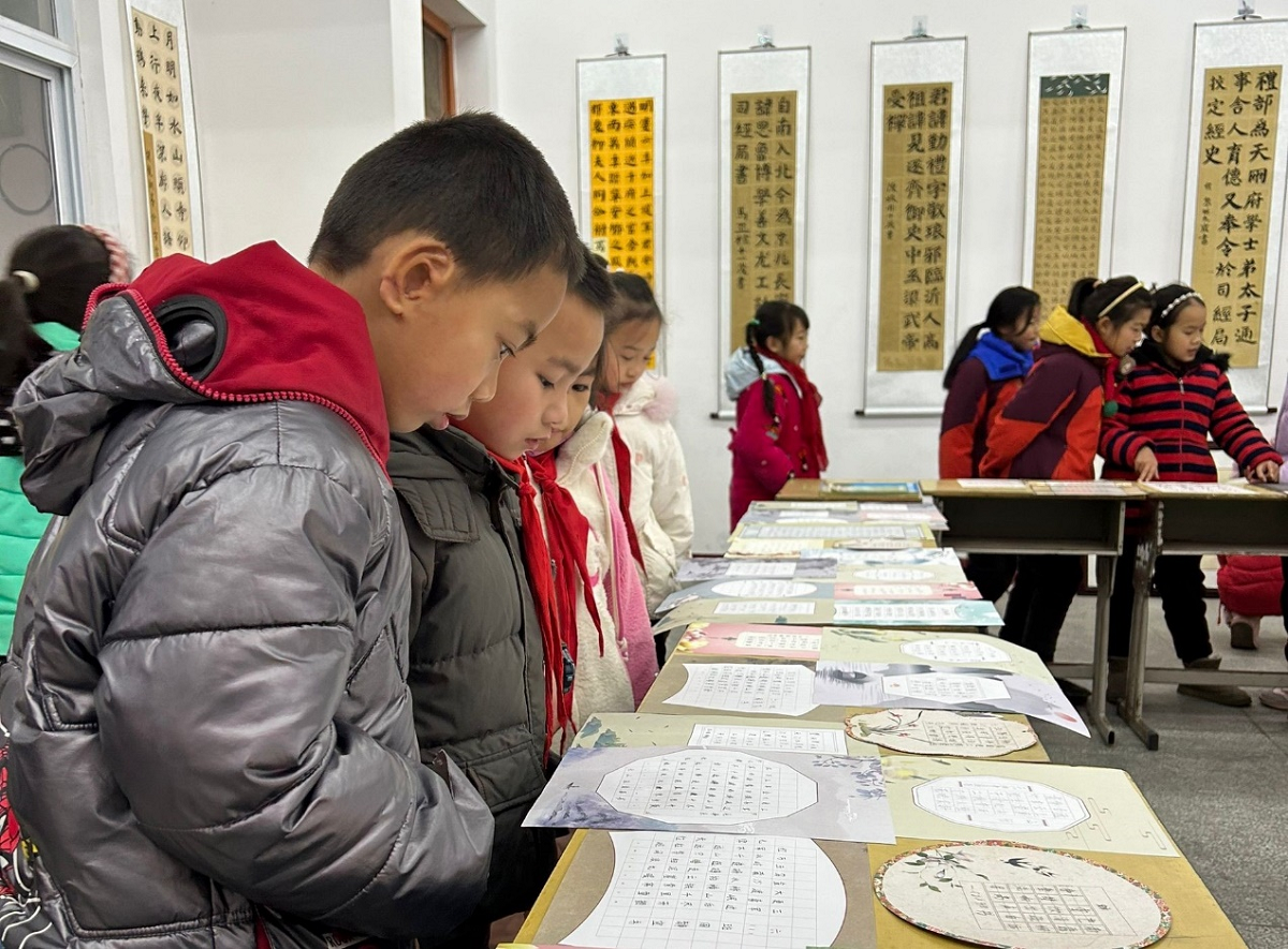 1月16日至17日,羅店鎮(zhèn)小學(xué)舉行書法作品展暨優(yōu)秀作業(yè)展活動(dòng)。本次展出的書法作品中有學(xué)生自己創(chuàng)作的,也有師生共同完成的作品。一行行排布美觀的楷書、矯若驚龍的毛筆字,學(xué)生們作業(yè)的字跡娟秀清晰,展現(xiàn)了孩子