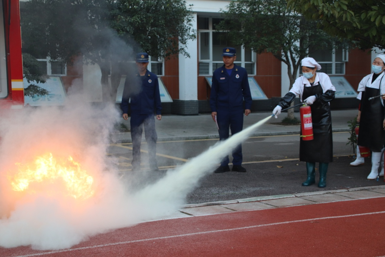11月6日,紺弩中學組織食堂工作人員開展消防安全演練活動。此次活動邀請市消防救援大隊消防員現(xiàn)場指導。他們首先講解了初級火災的正確處置方法,緊急情況下的應急疏散和撥打求救電話等內(nèi)容,重點給大家演示了滅火