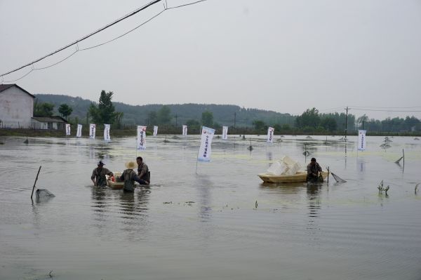 (基地員工正在收蝦)“從3月初開(kāi)始捕蝦,平均每天的捕蝦量保持在1000斤上下,一直捕到7月15日。之后,放干蝦池,再栽培洋西早。”5月17日,在京山淶富農(nóng)業(yè)科技有限公司位于宋河鎮(zhèn)徐橋村稻蝦連作基地里,