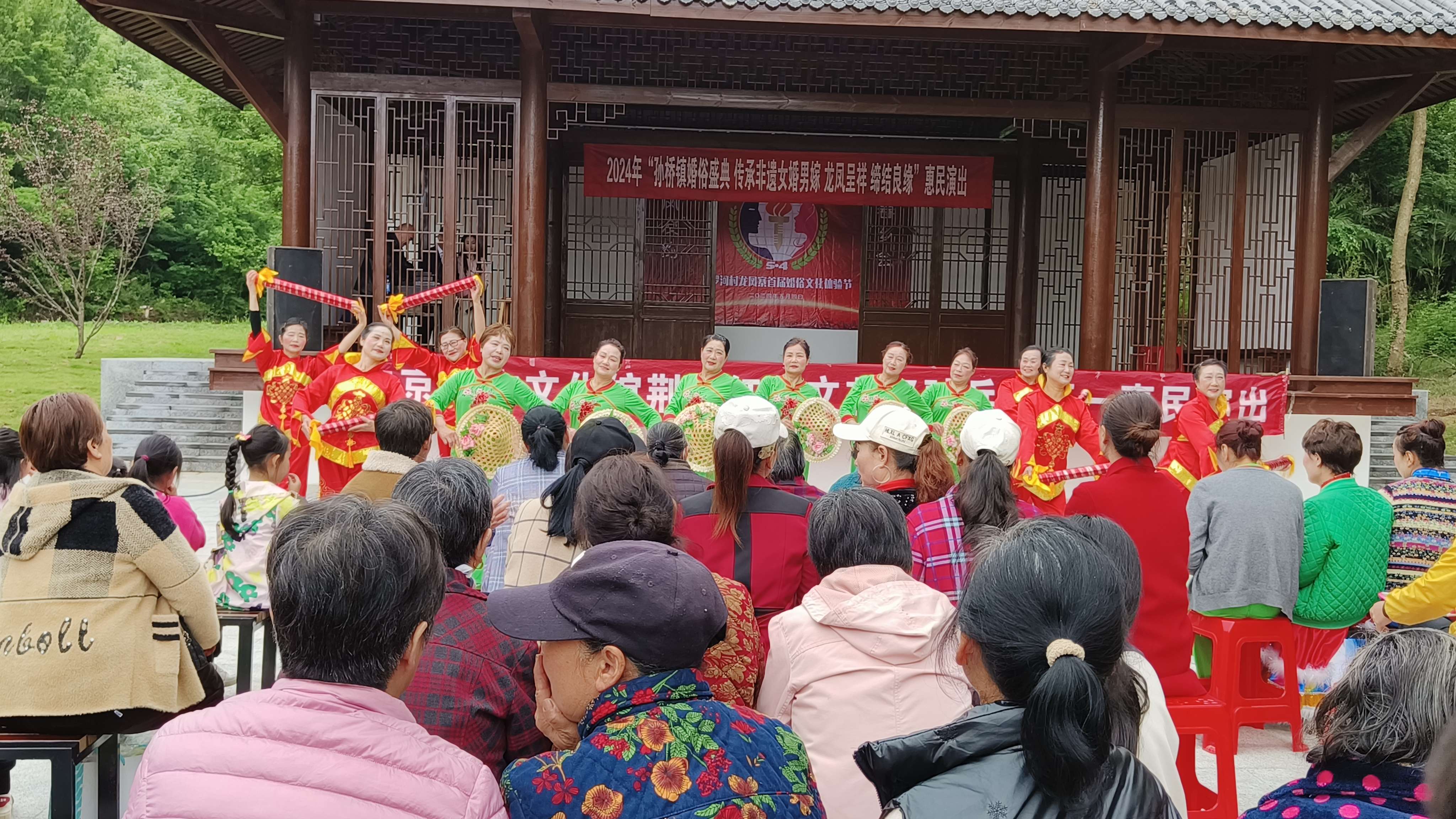 5月4日,孫橋鎮(zhèn)梭羅河村的文化廣場上,開展了一場盛大的歡慶梭羅河村龍鳳寨婚俗盛典暨文藝演出,吸引眾多村民的踴躍參與,還吸引了四方游客共襄盛舉。活動(dòng)當(dāng)天,在歡快的鑼鼓聲中,開場舞蹈《歡聚一堂》點(diǎn)燃了整場