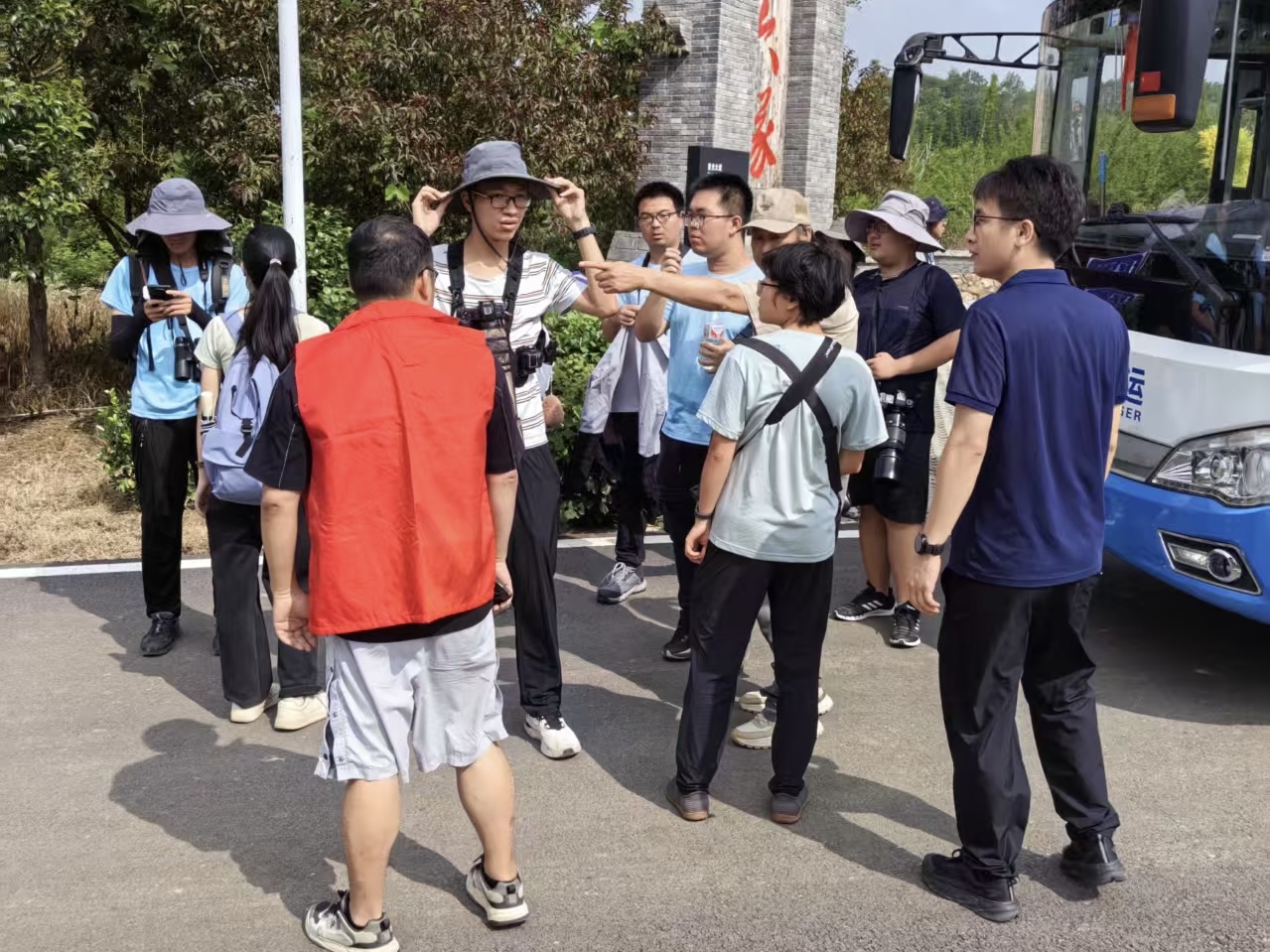 6月14日,在位于孫橋鎮(zhèn)尖峰嶺村紅星六隊(duì)的賞鳥活動現(xiàn)場,來自香港大學(xué)、北京大學(xué)、上海交通大學(xué)、南開大學(xué)、武漢大學(xué)等學(xué)校的大學(xué)生們手持望遠(yuǎn)鏡,仔細(xì)觀察著每一只鳥兒的姿態(tài),不時(shí)交流著自己的發(fā)現(xiàn)。