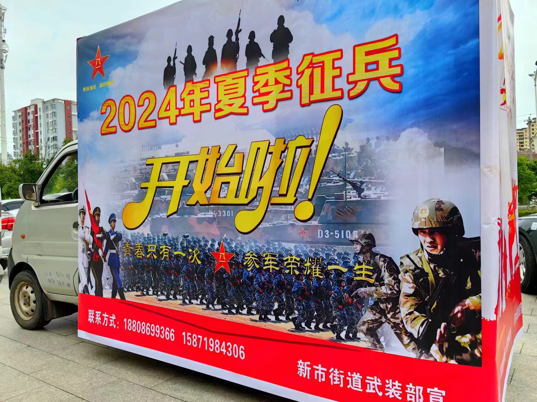 “一人當(dāng)兵,全家光榮。廣大青年朋友們,新市街道2024年夏季征兵工作已開啟……”7月11日,在新市街道城區(qū)主干路和田間地頭,征兵流動(dòng)宣傳車正對(duì)征兵工作進(jìn)行廣泛宣傳。截至目前,新市街道共懸掛橫幅83條,