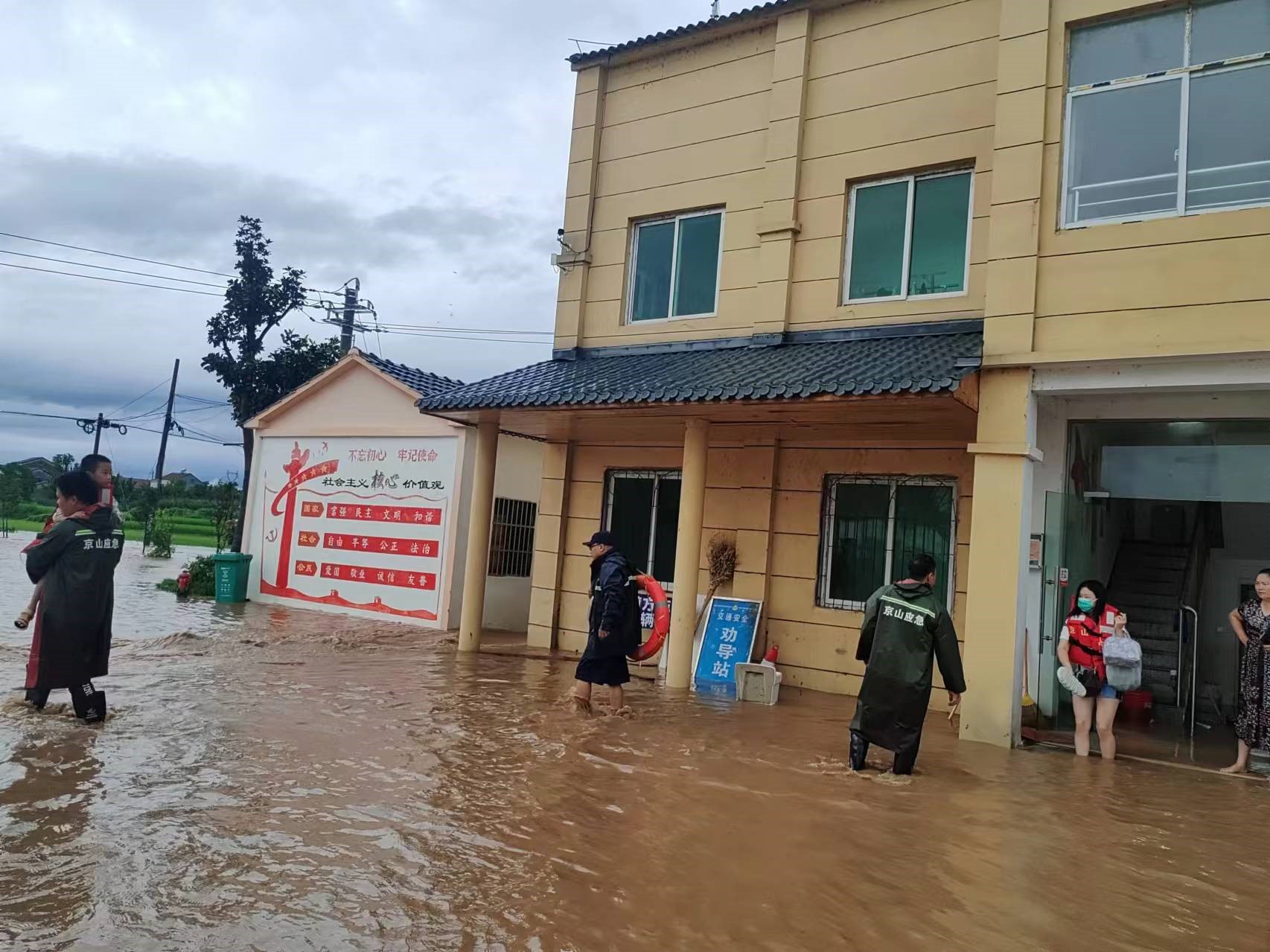 “書記,我家淹到了,客廳、閑屋都是水,麻煩過(guò)來(lái)看看?!?月14日早晨6點(diǎn),新市街道陳八字村黨支部書記楊少波接到村民陳大姐的電話,立即帶領(lǐng)村干部趕往她家里,把她接到村辦公室。隨后村干部勸離左右相鄰群眾并