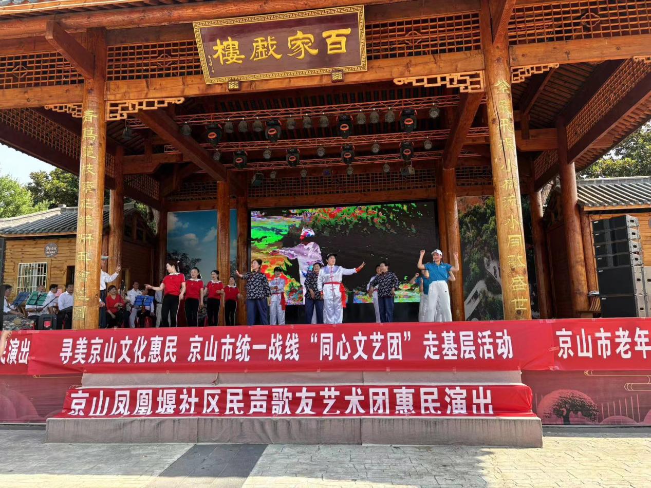 6月6日,新市街道鳳凰堰社區(qū)民聲歌友藝術(shù)團(tuán)聯(lián)合市老年體育協(xié)會(huì)、新市街道文體站等成功舉辦了一場(chǎng)主題為“尋美京山 文化惠民”的惠民演出活動(dòng)。演出當(dāng)天,白谷洞村百家戲樓前人頭攢動(dòng),熱鬧非凡。來自民聲歌友藝術(shù)