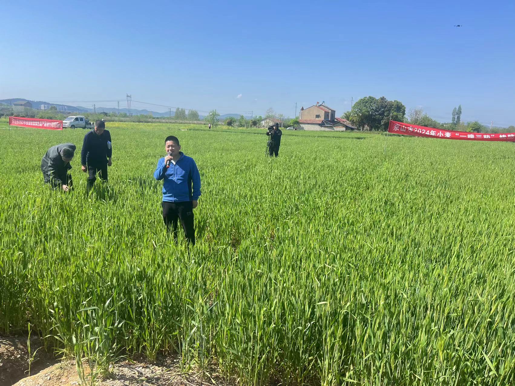 4月9日上午,新市街道在四嶺村、丁家塝村、鄢河村、高嶺村、荷花堰村對(duì)1.1萬畝小麥進(jìn)行飛防赤霉病防控?!靶←湷嗝共》乐巫罴褧r(shí)期是齊穗至揚(yáng)花初期這一關(guān)鍵時(shí)期,我們小麥在冬季凍傷了導(dǎo)致葉片不齊,推薦使用無