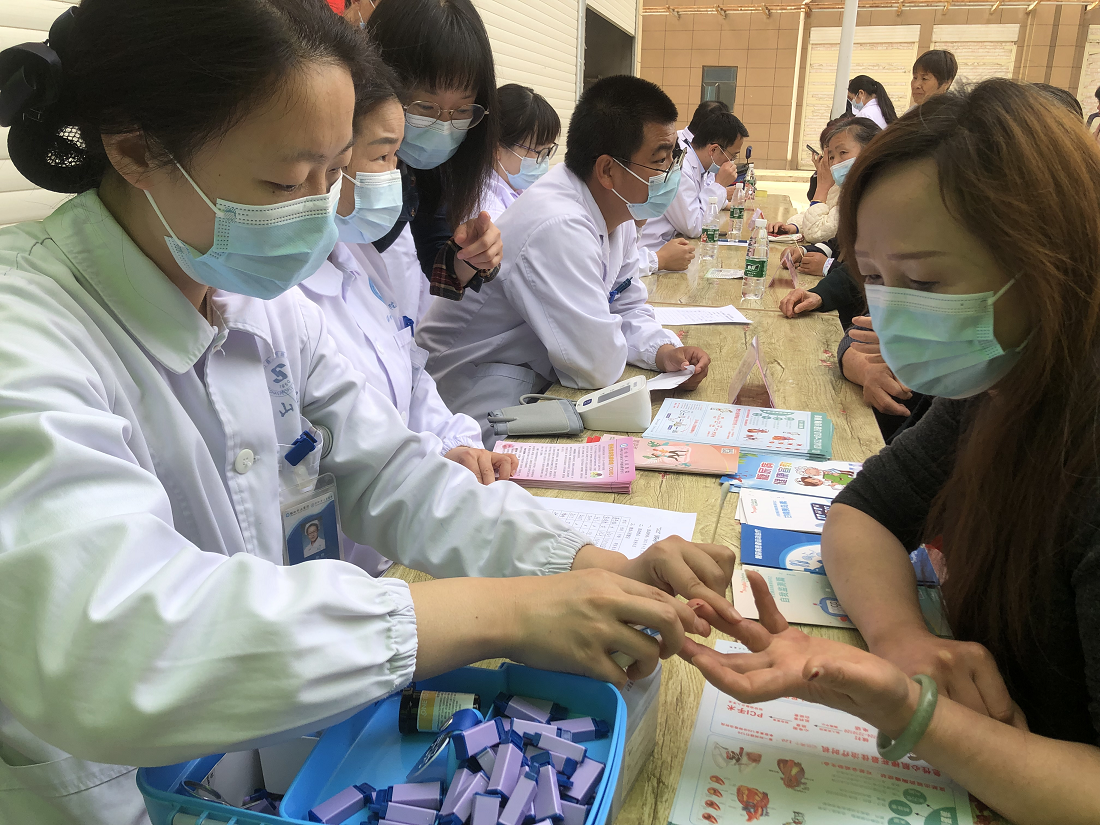 居民正在進(jìn)行血糖檢測 4月12日上午,新市街道三角洲社區(qū)黨總支聯(lián)合市人民醫(yī)院黨員先鋒隊(duì)、紅色物業(yè)云帆物業(yè)在京山天地開展“敲門行動(dòng)送溫暖 便民服務(wù)解民憂”活動(dòng)。 活動(dòng)現(xiàn)場共有疼痛科、婦產(chǎn)科、泌尿外