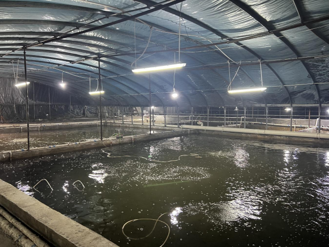 曾經(jīng)無人問津的溫泉,如今成為支撐苗場運轉的“生命線”。 2700平方米的大棚車間、29個生物圈養(yǎng)桶、21個標準池和5個標花池有序排列,循環(huán)水系統(tǒng)通過微濾機、羅茨鼓風機和生化池實現(xiàn)養(yǎng)殖廢水零排放。