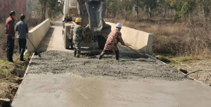 3月22日,在永興街道觀音村北干渠橋面修復(fù)施工現(xiàn)場,挖掘機(jī)、攪拌車等施工車輛發(fā)出陣陣轟鳴,施工人員正在加緊作業(yè),對橋面進(jìn)行水泥灌漿硬化。8名施工人員鉚足干勁搶工期、抓進(jìn)度,在暖春三月里一片火熱?!斑@座