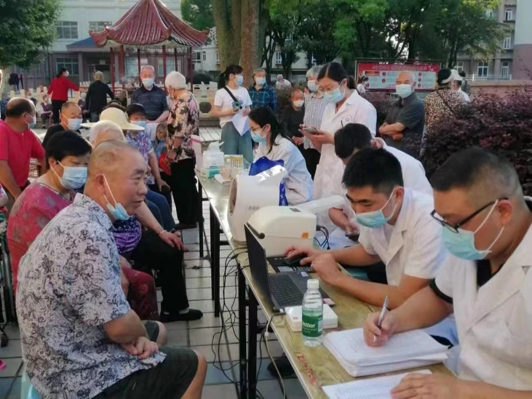 體檢現(xiàn)場(chǎng),醫(yī)生、護(hù)士有序?yàn)槔先诉M(jìn)行了血常規(guī)、B超、心電圖等項(xiàng)目的檢查。醫(yī)生們與每個(gè)老年人親切交談,詳細(xì)詢問他們的身體狀況、用藥情況,同時(shí)叮囑老人們?cè)谌粘I钪幸喑允卟撕退m當(dāng)運(yùn)動(dòng),飯后散散步,控制好血壓,并針對(duì)每位老年人的具體情況分別作出健康指導(dǎo),還為老人們宣講了有關(guān)夏季傳染病預(yù)防知識(shí)。