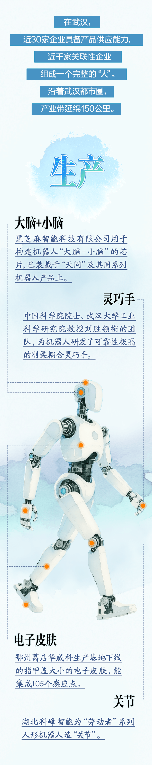 “以武漢都市圈為中心,完整的人形機器人產(chǎn)業(yè)鏈正加速形成?!眲僭菏勘硎?,人形機器人技術(shù)關(guān)乎材料、力學(xué)、芯片、控制等領(lǐng)域,要組合成一個完整的“人”,關(guān)鍵在于建立起人形機器人的產(chǎn)業(yè)生態(tài),打通全鏈條。