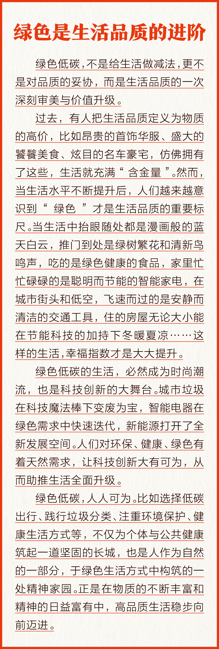長江日?qǐng)?bào)頭版刊發(fā)評(píng)論《綠色是生活品質(zhì)的進(jìn)階》。