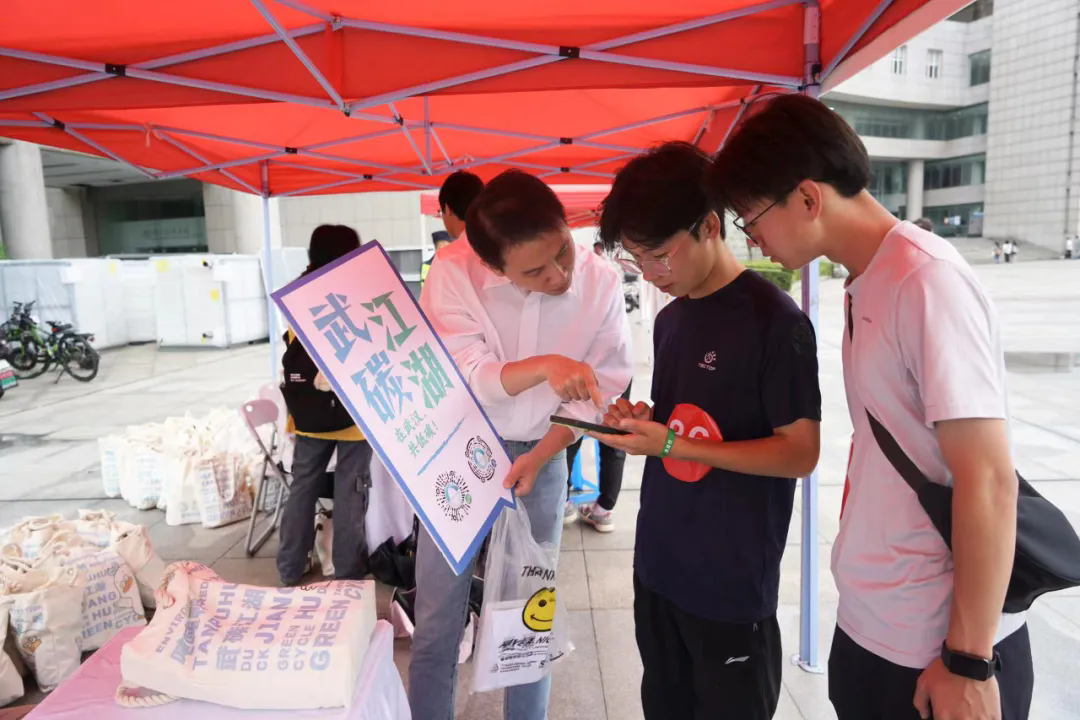 武漢碳普惠公司工作人員向大學(xué)生推介“武碳江湖”小程序。