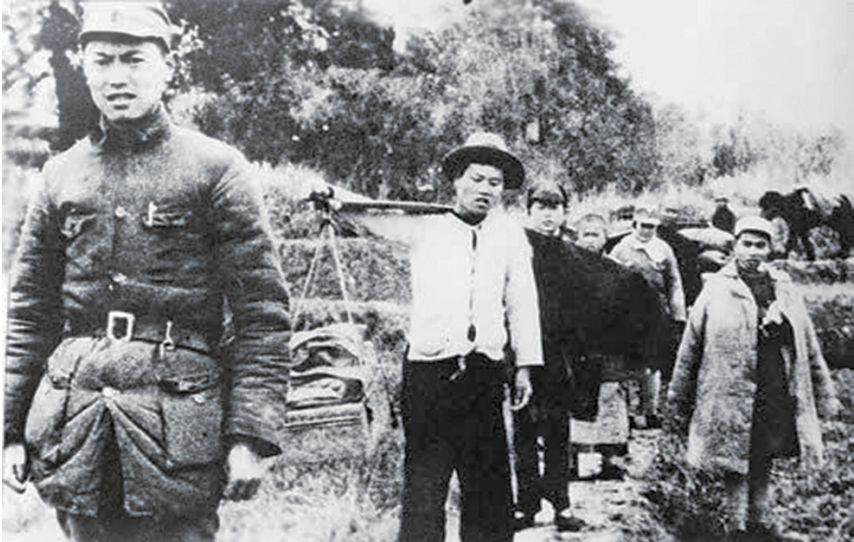 李先念(左一)率新四軍豫鄂挺進縱隊進入鄂中地區(qū)?!鲑Y料圖片