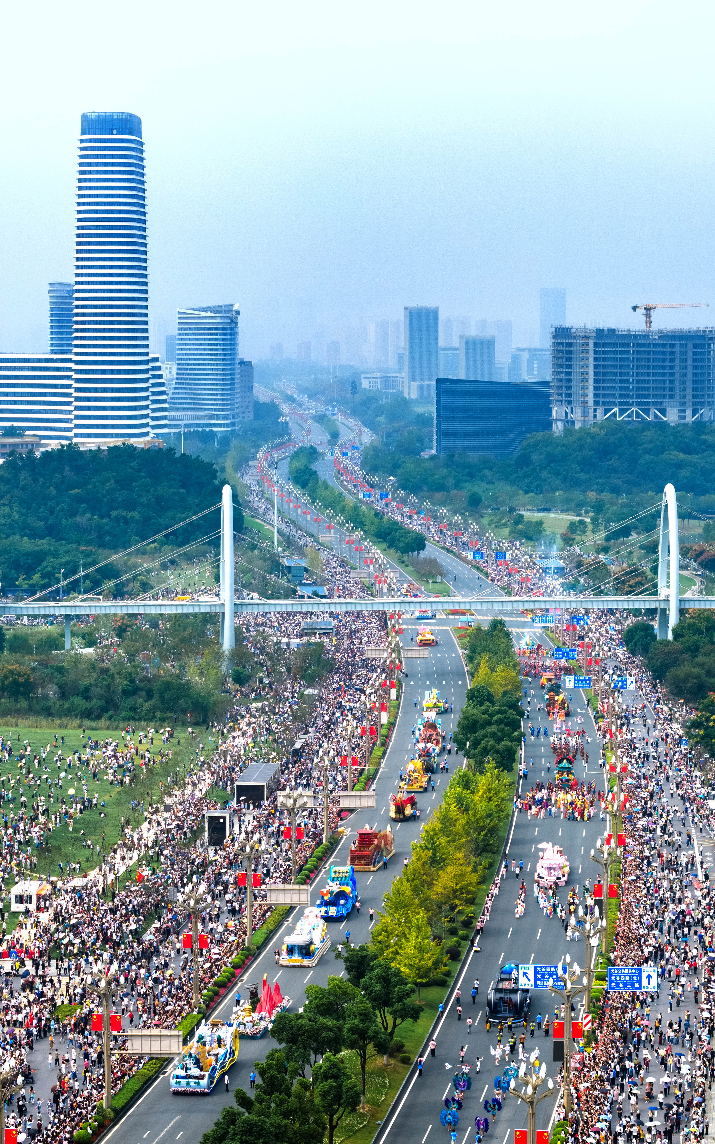 光谷花車大巡游,10萬市民游客共賞河山錦繡。 城市攝影隊 王玉明攝