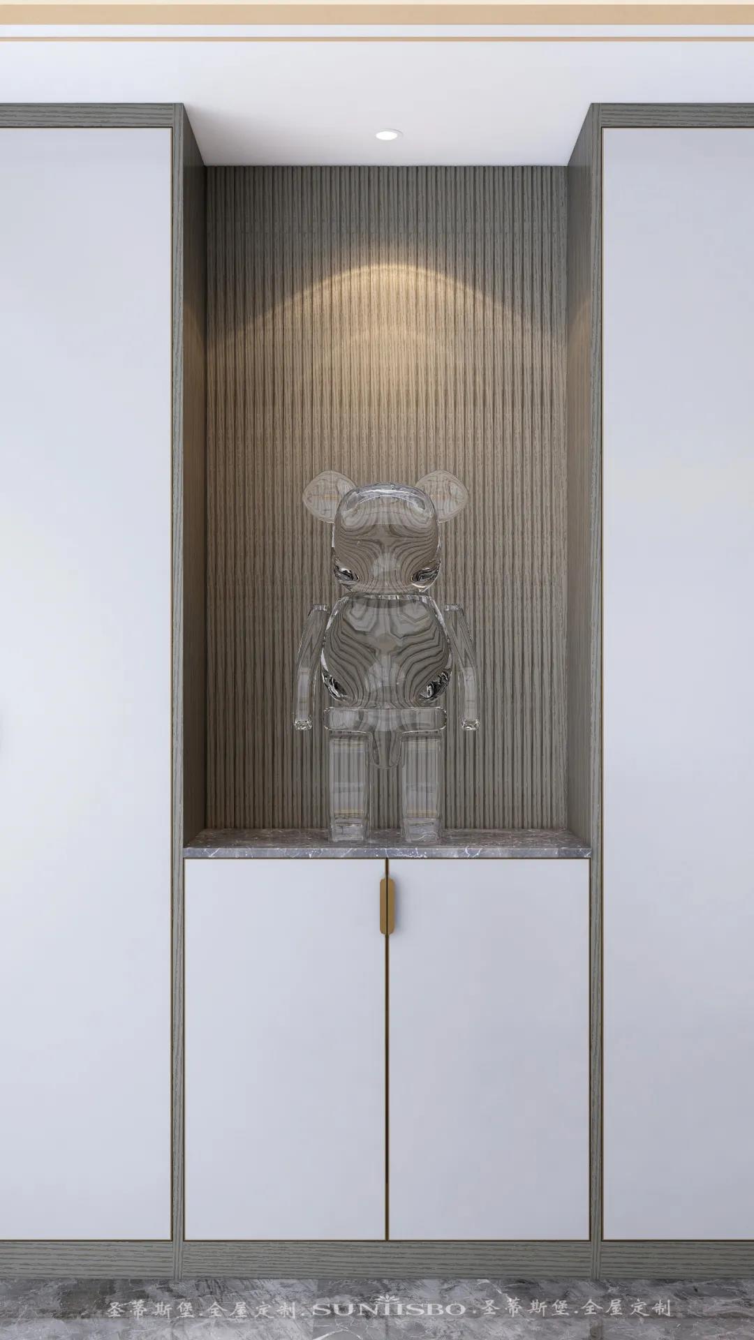 在細(xì)節(jié)設(shè)計(jì)之中,設(shè)計(jì)師以實(shí)木+紋理,營造一派簡(jiǎn)約輕奢之感,看似沒有繁雜的元素修飾,卻讓家多了一份高級(jí)感。