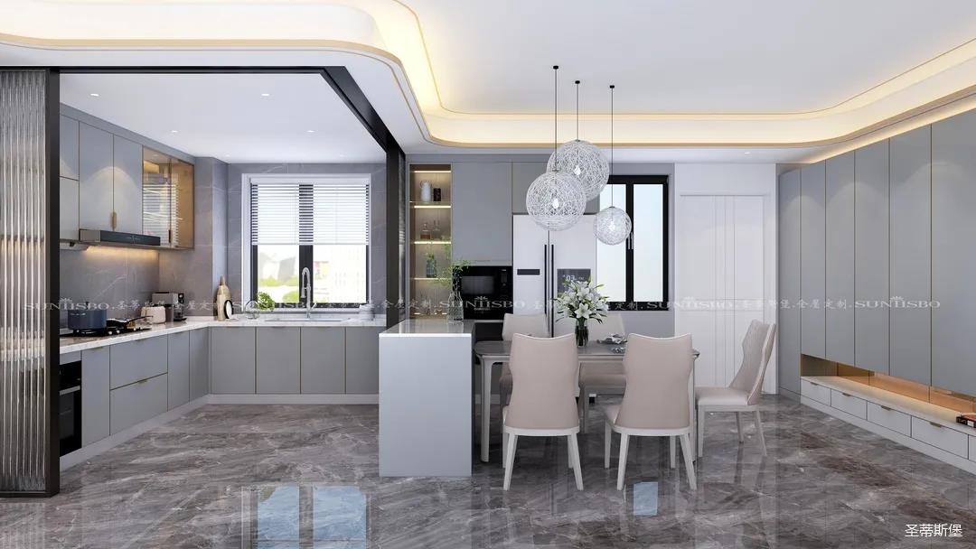 藏是漏的基礎(chǔ)。在社交軟件流行的當(dāng)下,親情之間也逐漸越來越遠(yuǎn),推演到空間,餐廚之間需要的不再是實(shí)墻的阻隔,而是用長虹玻璃代替,開合之間,他的認(rèn)真,你的可愛,都能在不經(jīng)意間盡收眼底。