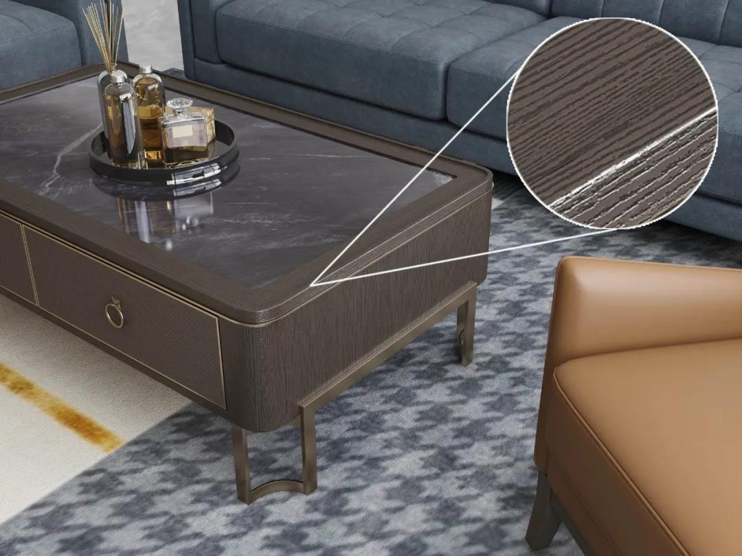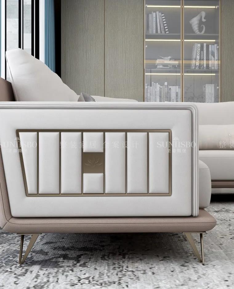 如果只是單純追求外在的簡約設計,如上所述,由于其造型線條簡單,缺乏裝飾形狀且裝飾元素很少,那么它的裝飾性就沒這么強,它的感覺更在當下的流行性,而不是長遠的裝飾性,我們洛斯系列在強調外形簡約的同時,講究內在細節(jié)的豐富,科技木皮嵌入與超纖藝術皮革飾面、實木藝術雕刻等,將產品的審美細節(jié)提升上來,以表現(xiàn)出更好的美感。沒有裝飾元素,空間會感到單調,這些具有獨特設計甚至極富創(chuàng)意的個性化裝飾元素,打破了洛斯在造型簡約上帶來的單調感與呆板感,將審美周期大幅度的延長。