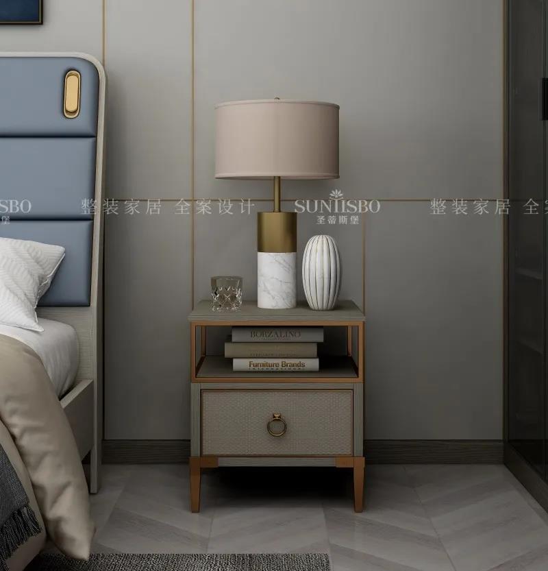 洛斯系列在現(xiàn)代時尚的基礎上還增加了許多輕奢的金屬元素,金屬元素在輕奢風里毋庸置疑的存在。為什么人喜歡戴耳環(huán)、戒指、項鏈等首飾?為什么衣服、鞋子、包包上都能看到金屬元素的身影?從時尚圈到家居界,金屬元素憑借其獨特的質感以及由內散發(fā)的高級氣質,有著強大的包容性,提升風格格調,增添時尚氣息。運用在家居中可成為整個空間的亮點,成為時下家居裝修的潮流趨勢,深受大家的喜愛。但是目前市面上采用金屬鑲嵌工藝的多數是在板木結合的基礎上,難度相對簡單易操作。在洛斯系列里,是在實木的基礎上進行金屬鑲嵌工藝,要求精準度非常高,誤差不得超過0.5毫米,不然就會對不齊。在洛斯系列中,桌子的四角與腿部、柜類門板,沙發(fā)腿部,茶幾支架,餐桌臺面,床品外框等都將金屬恰到好處地融入到空間的每個角落,讓空間擁有輕奢的高級感,提升空間的質感。將優(yōu)雅謙遜的都市精致感全面呈現(xiàn),讓裝修冷中帶暖、沉靜精致,也向人們展示了一種精致的生活方式,更為整個家注入靈動氣息。