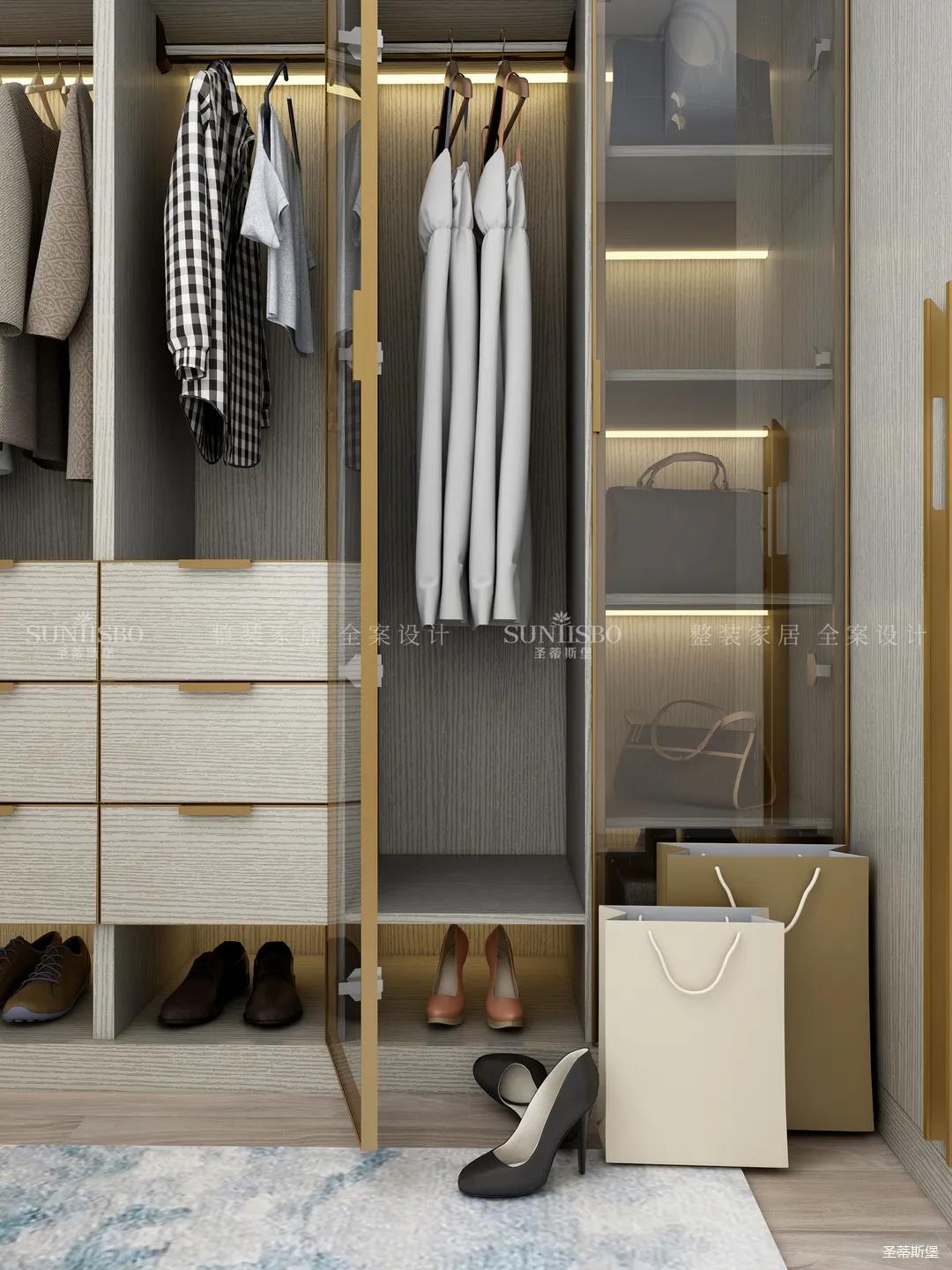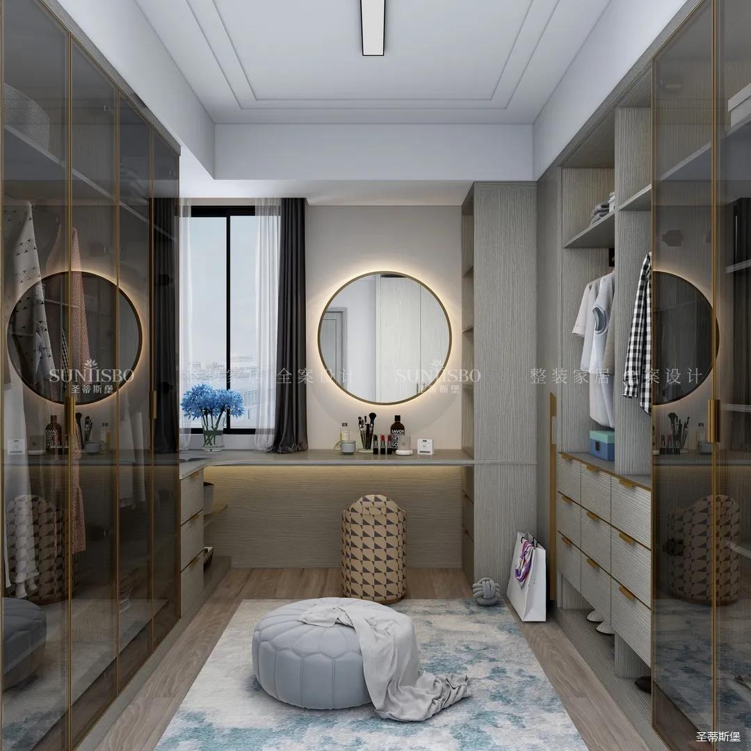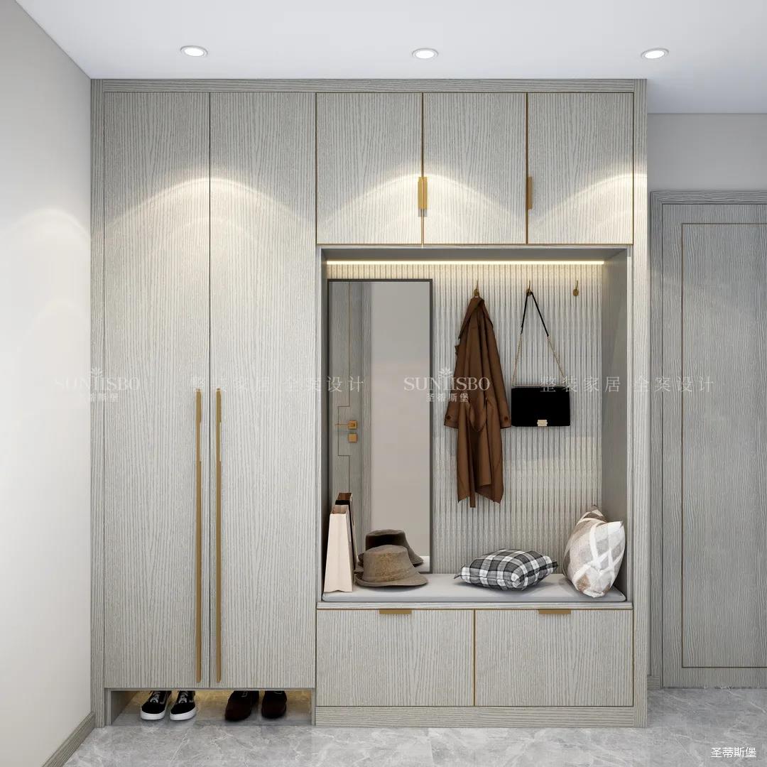 進(jìn)入玄關(guān)區(qū)域就能感受到房主對時尚風(fēng)格的偏愛,實木元素與簡奢金屬的碰撞,既有對材質(zhì)的甄選,又有現(xiàn)代簡奢的品質(zhì)感。穿衣鏡、換鞋凳、收納柜等藏漏有序的分區(qū),將屋主的生活歸納的井井有條。