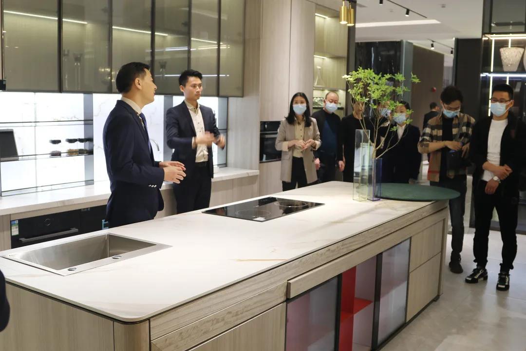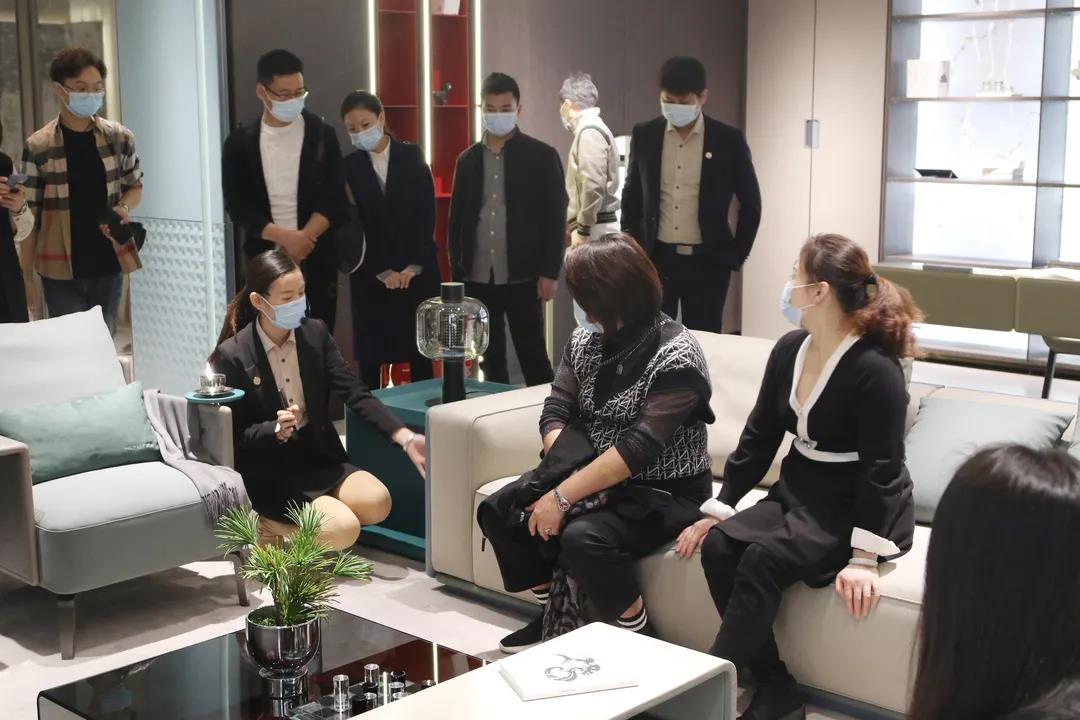 隨后,嘉賓們迫不及待地移步至位于集團(tuán)營銷中心三樓的新品牌【西瑞】展廳。在潮味十足的展廳內(nèi),集團(tuán)營銷總經(jīng)理陳玉偉先生圍繞著新時(shí)代下家居行業(yè)的發(fā)展趨勢(shì),對(duì)西瑞產(chǎn)品架構(gòu)和矩陣進(jìn)行了深度解析,并為嘉賓們?nèi)轿唤榻B了西瑞的產(chǎn)品定位,材質(zhì)工藝,以及“整裝定制·全案設(shè)計(jì)”的發(fā)展方向。全新的設(shè)計(jì)視角、個(gè)性十足的產(chǎn)品設(shè)計(jì)引來了現(xiàn)場(chǎng)嘉賓們的駐足品鑒。系列產(chǎn)品的“時(shí)尚新銳”、“潮流大氣”、“高級(jí)質(zhì)感”、以及極具新青年格調(diào)的定制空間贏得了現(xiàn)場(chǎng)嘉賓的由衷贊譽(yù)和高度認(rèn)可。