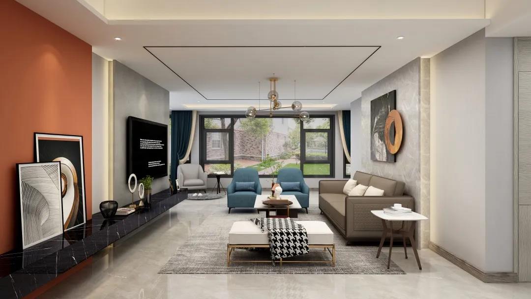 窗外的陽(yáng)光使得客廳空間更加明亮寬敞。電視墻精致的線條設(shè)計(jì),令空間更具層次感。亮眼的愛(ài)馬仕橙,搭配個(gè)性的抽象掛畫又讓整個(gè)墻面更加豐富?;盍εc沉穩(wěn)融合,給平凡而枯燥的生活增添些許希望與美好。