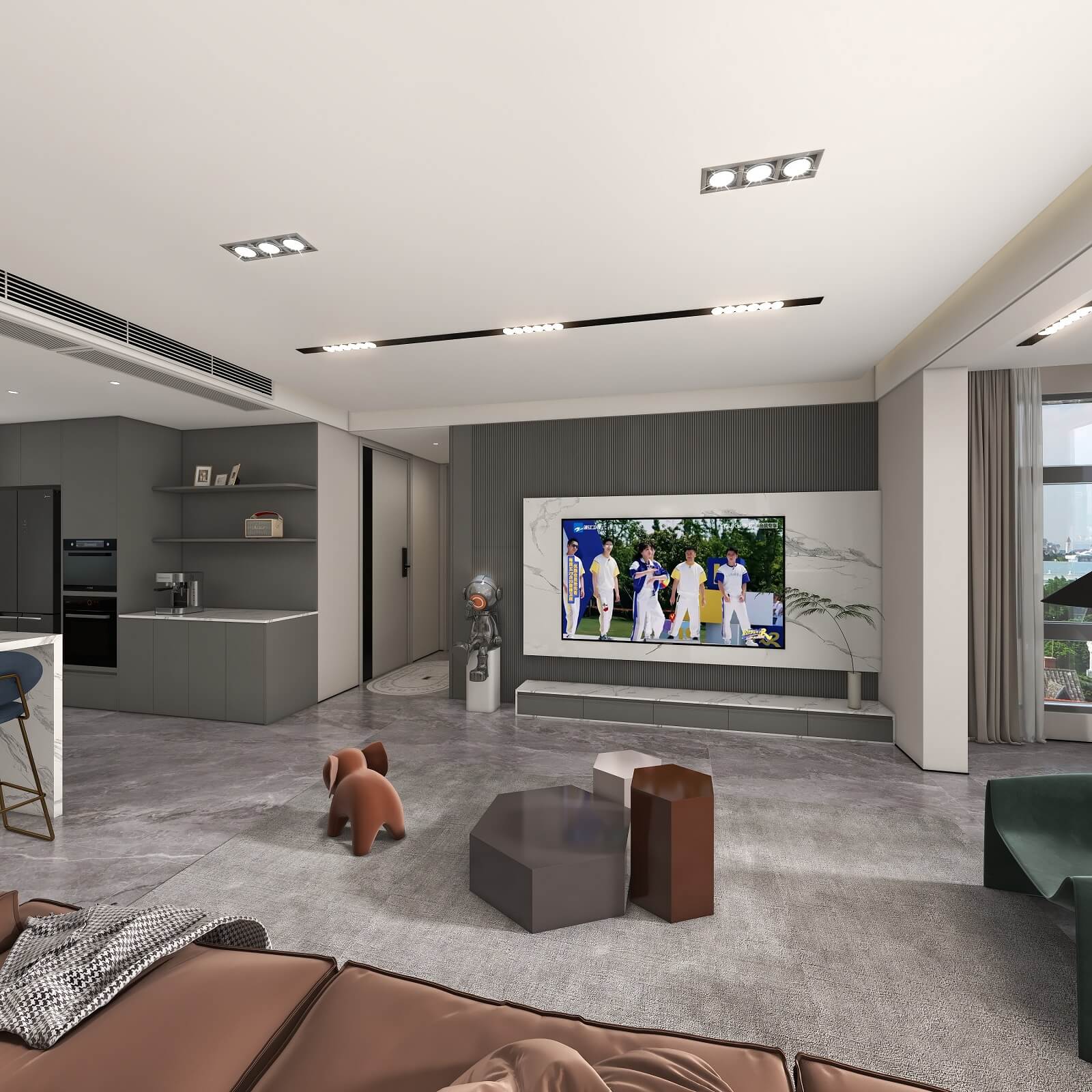 全面開放式格局,讓客餐廳之間相互聯(lián)動,毫無阻隔,在提升體驗感的同時,也增強了整體采光和通風(fēng)。